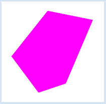 Programm: [►] # ShapesEx4.py from gpanel import * makeGPanel(-10, 10, -10, 10) corners = [(-5, -2), (-2, -6), (1, -5), (4, 2), (-1, 3)] setColor("fuchsia") fillPolygon(corners) keep() |